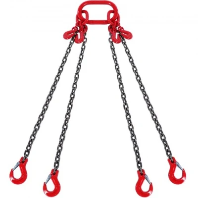 VEVOR Chain Sling, 1/4 inch x 5 ft Lifting Chains with Hooks, G80 Engine Chain Hoist Lifts, 6600 lbs/3 Ton Lifting Sling Chains for Engine Hoist, Engine Lift Chain with 4 Leg Grab Hooks and AdjustersG80 ChainCritical CoatingAdjustable HookWide ApplicationsDesigned with You in MindSecure Hook DesignSingle Chain Length: 5 ft/150 cm,Item Model Number: DL6mmx1.5m-4A,Product Weight: 18.08 lbs/8.2 kg,Max Secure Load: 6600 lbs/2993 kg,Chain Diameter: 1/4" (6 mm),Overall Strength Grade: G80