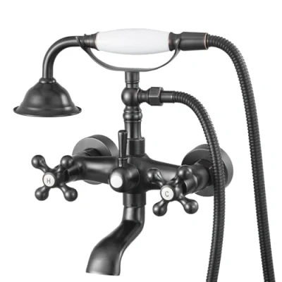 Elegant and Durable: Built from solid brass with oil-rubbed bronze finish, VEVOR clawfoot tub faucet resists corrosion and fading. With classic, stylish appeal, smooth water flow and flexible temperature control, it delivers a comfortable bathing experience while upgrading the bathroom's décor Easy Mounting: This bathtub faucet with handheld shower supports wall and tub installation, featuring G 1/2" male pipe thread and adjustable swing arms that provide 5.5–6.7 inch (140-170 mm) mounting hole center distances. Also includes a sealing tape to enhance connection tightness and prevent leaks Dual Water Outlet Modes: Freely switch between the handheld shower and the 360° rotatable tub spout for either a relaxing shower or quick tub filling. At 80 PSI, the handheld shower provides up to 1.25 GPM (4.72 LPM) flow rate, delivering a strong, steady flow for a refreshing bathing experience Hot & Cold Water Control: Dual handles provide independent hot and cold water control, allowing you to easily set the ideal bathing temperature. Built with leak-proof ceramic cartridges for heat resistance and smooth action, this wall-mounted tub filler shower ensures excellent durability More Enhanced Designs: This clawfoot tub faucet shower kit includes a 59-inch (1.5m) long hose for flexible use in daily bathing, hair washing or tub cleaning. The lightweight, ergonomic shower handle provides a comfortable grip, and the surface finish resists stains for easy cleaning