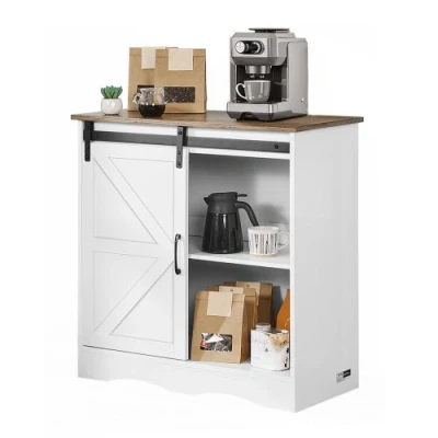 VEVOR Coffee Bar Cabinet, 31.5 x 13.8 in Farmhouse Cabinet with 3 Tier Storage, Table Barn Door, Sideboard Buffet for Living Room, Entryway