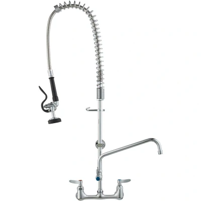 VEVOR Commercial Faucet with Pre Rinse Sprayer, 36" Height, 8" Center, 12" Swing Spout, Wall Mount Kitchen Sink Faucet, Brass Constructed Device Pull Down Spray, for 1/2/3 Compartment