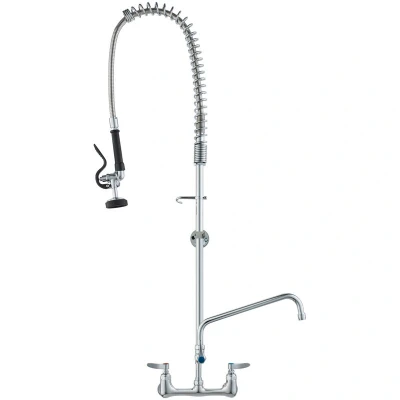 VevorVEVOR Commercial Faucet with Pre-Rinse Sprayer, 47" Height, 8" Center, 12" Swing Spout, Wall Mount Kitchen Sink Faucet, Brass Constructed Device with Pull Down Spray, for 1/2/3 Compartment SinkDual OutletWear-resistant, No PeelingDual Mode Spray HeadUniversal FaucetQuick InstallationReplacement O-RingsNet Weight (including all accessories): 10.8 lbs / 4.9 kg,Item Height: 47 inch,Item Model Number: 3803A-12-47,Main Material: Brass