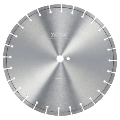 VEVOR Diamond Blade, 16inch/400mm Concrete Saw Blade Wet or Dry, 0.47inch/12mm Flat Teeth Diamond Segment Blade, Universal 1 inch/25.4 mm Center Hole Diameter, for Concrete Cement Board Tile BrickHigh-Durability MaterialsFast CuttingSafe and Tooth-Damage FreeMulti-Purpose UseStrong CompatibilitySuitable for Dry and Wet CuttingOuter Diameter: 16 inch / 400 mm,Segment Blade Height: 0.47 inch / 12 mm,Package Dimensions: 17.32 x 17.32 x 0.47 inch / 440 x 440 x 12 mm,Item Model Number: XMF400124464F,Product Weight: 6.57 lbs / 2.98 kg,Quantity: 1 Piece,Main Material: 30Cr-Mo + Diamond,Tooth Type: Flat Teeth,Center Hole Diameter: 1 inch / 25.4 mm