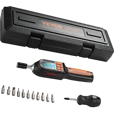 ManoManoVEVOR Digital Torque Screwdriver 1/4" Bit Size, 2.65-70.67 in-lbs Range, Digital This digital torque screwdriver not only boasts a stylish design but also offers powerful functionality. It incorporates advanced technology with an LCD screen and backlight display, along with various practical features like preset mode, real-time mode, and peak mode. Whether you're a professional technician or a DIY enthusiast, you can effortlessly tackle a wide range of tasks with this tool. Get your own torque screwdriver today and experience the convenience it brings! High Compatibility & Large Digital Display Preset Modes Real-time & Peak Mode Quick Release Design Digital Display Torque Screwdrive With a torque range of 2.65-70.67 in-lbs, this torque screwdriver is suitable for various sizes and models of screws. By purchasing just one torque screwdriver, you can easily tighten or loosen screws of different sizes and models. It not only offers convenience but also saves you time and cost. Key