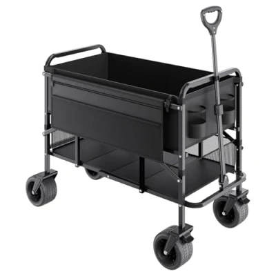VEVOR Double Decker Wagon Collapsible, 300L Heavy Duty Folding Cart, Extended Long Garden Cart with All Terrain Wheels, Support Up to 450lbs, Outdoor Utility for Camping, Sports, Shopping
