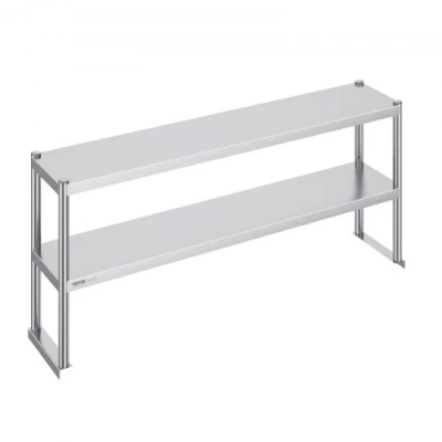 VEVOR Double Overshelf, Double Tier Stainless Steel Overshelf, 12 x 60 Inch Double Deck Overshelf, Height Adjustable Overshelf Prep Work Table for Kitchen, Restaurant and WorkshopStylish Work TableMultiple Styles AvailableDurable, Safe, and StableFlexible SetupEasy to InstallVersatile ApplicationsMax Overall Size: 12 x 60 x 25 inch / 305 x 1524 x 640 mm,Item Model Number: LJ1520*300,Product Weight: 22 lbs / 10.1 kg,Fixed Base to Top Surface Size: 12 x 60 x 24 inch / 305 x 1524 x 600 mm,Material: Stainless Steel