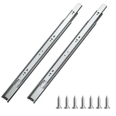 VEVOR Drawer Slides, 18 inch, 10 Pairs Full Extension Ball Bearing Cabinet Rails, 100 LB Load Capacity Heavy Duty Side Mount Dresser Drawer Slides, Drawer Track Runners for Kitchen DIY ReplacementDetachable SnapsNylon Rubber StopperDouble Rows of Solid Steel BallsExcellent Load CapacityThickened MaterialCompact DesignWeight Capacity: 100 lbs / 45 kg,Item Size: 17.72 x 1.81 x 0.5 inch / 450 x 46 x 12.7 mm,Color: Silver,Item Model Number: 4530.450.ZC,Quantity: 10 Pairs,Material: Carbon Steel,Net Weight: 25.31 lbs / 11.48 kg