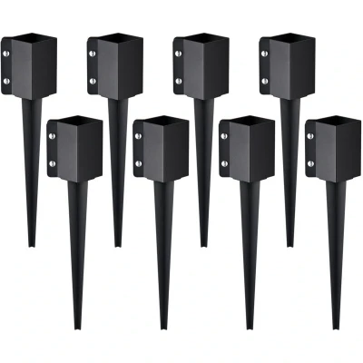 VEVOR Fence Post Anchor Ground Spike, 8 Pack 24 x 4 Inches Outer Diameter (Inner 3.5 x3.5 Inches), Metal Black Powder Coated Stake Ground, for Mailbox Deck Garden Railing