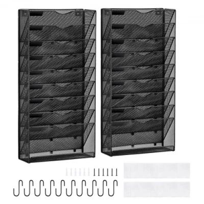 VEVOR File Wall Rack, Two-Piece 10 Pockets Mesh Wall File Holder, Wall Mounted Magazine Mail Paper & Document Storage Folder, Metal Wall File Organizer with Nametag Label, for Office Home & SchoolHanging DesignOrder in LayersCurved Pockets for EaseSturdy and Long-lastingA Breeze to InstallStrong Load-bearingWeight Capacity: 10 kg / 22.05 lbs per unit,Number of Units: 2,Number of Tiers: 10,Item Model Number: JLW019,Product Weight: 4.55 kg / 10.03 lbs,Product Dimensions: 322 x 105 x 650 mm / 12.60 x 4.13 x 25.59 in