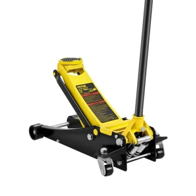 Jack it Up: With 2.5 tons/5500 lbs strong loading capacity, VEVOR's floor jack can help you raise your car for whatever reason. Replace a tire, change oil or maintain the brake, whether you are a professional, car enthusiast, or weekend DIYer to take matters into your own hands! For All Your Lifting Needs: Min. Height: 3"/75 mm. Max. Height: 19.49"/495 mm. The wide lifting range meets your lifting needs of family cars, trucks, SUVs, etc. And a dual parallel pump system allows you to lift to the highest in full 7 strokes. Speed up your process. Rigid Steel Construction: Boasts heavy-strength steel construction, our low-profile jack is durable and sturdy to use. It is equipped with steel wheels (2 rear wheels are universal), making the jack easy to maneuver, steer, or roll. Secure and Carefree: A rubber saddle and a foam handle bumper provide maximum protection to your vehicle! The 360° rotatable saddle can be detached and replaced. Thanks to the leverage principle, the 45 in/1145 mm long handle makes lifting easier. With the two-piece design, the handle can be disassembled when stored, taking up little storage space. Meet International Certifications: Comply with CE certification (2006/42/EC (EN1494)), UKCA certification (SI 2008 NO.1597(BS EN1494)), and ASME PALD-2014 SAFETY STANDARD. Our jack features a built-in safety load system that prevents use beyond load capacity. The excellent sealing system ensures your security and long-term use.