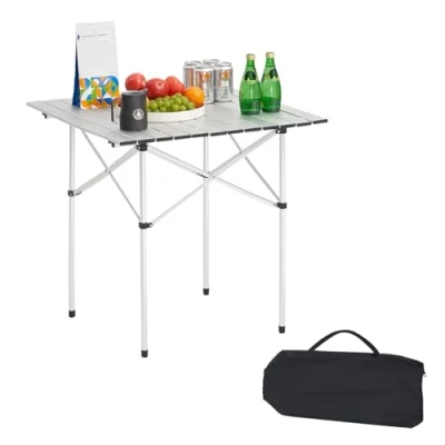 Height Adjustment: The camping table has a 27.6-in-wide tabletop seating 2-4 adults. Lightweight frame and compact fold make transport easy for parks, concerts, or tailgates Stable Construction: Engineered with seamless steel cross structure, this outdoor table supports up to 66 lbs while minimizing weight. Sturdy link joints help prevent sagging, providing a reliable platform for 2-4 person gatherings Portable & Lightweight: Roll-top folding portable table stores compactly in included reinforced-handle bag. The compact work table is lightweight, and folds to a slim 7.9x3.9x28.3 in — fits seamlessly in car trunks, RVs, or garage shelves Easy Installation: No assembly needed—simply unfold the legs, lock the crossbars into place, and secure the tabletop with plastic clasps. Robust side hinges ensure long-lasting performance even with frequent use Wide Application: Slim profiles and neutral finishes suit indoor/outdoor use. Smooth tabletop helps resist scratches and wipes clean easily, while non-slip foot pads guard floors and enhance the stability of side table on hard surfaces