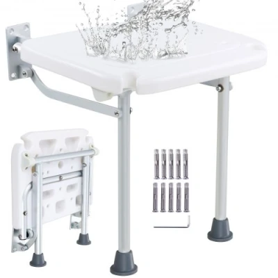 VEVOR Folding PE Shower Seat, 15.7'' x 14.8'' Unfolded, Wall Mounted Fold Up Shower Bench with 500 lbs Load Capacity, Space Saving Fold Down Shower Chair for Seniors Pregnant Women Children AdultsExperience Comfort and Security in Your ShowerMoisture-Resistant and WaterproofUse with ConfidenceFlexible and FoldableVersatile UsageEasy Drill InstallationMax. Load Capacity 500 lbs/226.8 kg kg:,Item Model Number: FBL650322,Net Weight: 4.8 lbs/2.16 kg (with all accessories)