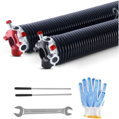 VevorVEVOR Garage Door Torsion Springs, Pair of 0.225 x 2 x 27 in, 16000 Cycles, Electrophoresis Black Coated for Replacement, Garage Door Springs with Non-Slip Winding Bars, Gloves and Mounting WrenchPrecision Engineering for PerformanceUpgraded and Improved TechnologyDurable Beyond CompareQuick & Hassle-FreeSafety FirstSpring with ElectrocoatingService Life: Approximately 16,000 Cycles (opening + closing),Net Weight(Include accessories): 21.6lb / 9.8kg,Spring Size (Wire Dia. x Inner Dia. x Length): 0.225 x 2 x 27 inch / Φ5.72 x Φ50.8 x 685 mm,Item Model Number: 225-2-27,Rotation: 1 x Dextrorotary + 1 x Levorotary,Main Material: High Carbon Steel 82B + Cast Aluminum ADC12