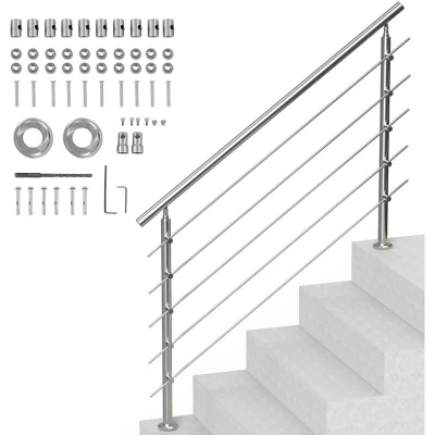 General description This VEVOR Handrail for Outdoor Steps is a durable and stylish solution designed to enhance safety and support for users of all ages. With a length of 59 inches and five crossbars, this stainless steel railing is perfect for porches, decks, and staircases, providing reliable assistance for seniors, children, and pregnant women. Technical specifications Length: 59 in Weight capacity: 220 lbs Adjustable angle: 0°-45° Compatibility and accessories Compatible with concrete, wood floors, tiles, marble, and other solid surfaces Includes a complete set of installation hardware: screws, nuts, expansion bolts, and metal anchors Installation Equipped with stainless steel expansion bolts for double reinforcement User-friendly manual included for straightforward installation Usage Ideal for doorsteps, garage entrances, garden railings, and various stair configurations Provides a comfortable grip for safe navigation of stairs Other information