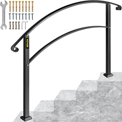VEVOR Handrails for Outdoor Steps, Fit 1 or 5 Steps Stair Railing, Black Wrought Iron Handrail, Flexible Front Porch Hand Rail, Transitional Concrete Wooden Stairs