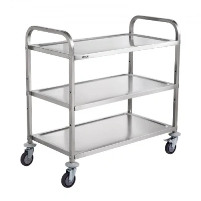 VEVOR Kitchen Utility Cart, 3 Tiers, Wire Rolling Cart with 450LBS Capacity, Steel Service Cart on Wheels, Metal Storage Trolley with 80mm Basket Curved Handle PP Liner 6 Hooks, for Indoor and OutdoorPartition GrooveDent-Proof BeamCurved HandlesThickened ColumnsExtensive 3-Tier SpaceIncreased Load BearingNumber of Shelves: 3,Fixed Shelf Height: 8.12" / 206.5 mm,Max. Load Bearing: 450 lbs / 204.1 kg,Adjustable Shelf Height: 4.07" / 103.5 mm,Model: 100201,Product Weight: 34.3 lbs / 15.6 kg,Frame Material: Stainless Steel,Number of Wheels: 4,Product Dimensions: 37.5"D x 19.7"W x 37.7"H