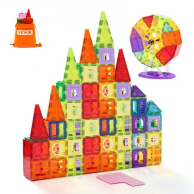 VEVOR Magnetic Tiles, 180 PCS Magnetic Building Blocks for Kids, Magnet Building Set with 2 Car Bases & Ferris Wheel Stand, STEM Educational Construction Stacking Toys for Toddlers Boys Girls Aged 5+Versatile FunStrong Magnet PowerSecurity Comes FirstUser-Friendly DesignPerfect for All SettingsRounded EdgesItem Model Number: 180CXJM5,Product Weight: 10.78 lbs/4.89 kg,Max Product Size: 9.25 x 1.77 x 7.87 in/235 x 45 x 200 mm,Number of Magnetic Tiles: 177 PCS,Material: Plastic + Ferrite,Total Pieces: 180 PCS,Magnets: Ferrite,Assembly Method: Ultrasonic Welding,Storage Bag: Orange Oxford Drawstring Bag