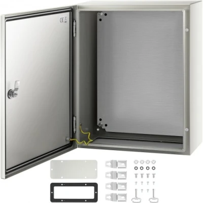 VEVOR NEMA Steel Enclosure, 20 x 16 x 8'' NEMA 4X Steel Electrical Box, IP66 Waterproof & Dustproof, Outdoor/Indoor Electrical Junction Box, with Mounting PlatePremium Steel MaterialIP66 Protection LevelHinge and Lock SecurityEffortless to Install & UseThoughtful DesignExtensive ApplicationInner Dimensions (H x W x D): 19.6'' x 15.6'' x 6.6'' / 49.7 x 39.7 x 16.65 cm,Color: Gray White(RAL7035),Material: 0.059'' / 1.5 mm Carbon Steel,Feature: Lockable, Waterproof,Certification: CE / ROHS Certification,Mounting Plate: 0.079'' / 2 mm Detachable Galvanized Backplate,IP Rating: Designed to meet IP66 and NEMA 1, 2, 4, 4X, & 12 specifications,Outer Dimensions (H x W x D): 20'' x 16'' x 8'' / 50 x 40 x 20 cm,Galvanized Backplate Dimensions: 17.7" x 13.8" / 45 x 35 cm,Connection Type: Hinged,Model: SPT,Product Weight: 29.32 lbs / 13.3 kg,Coating: Epoxy Polyester Powder Coating