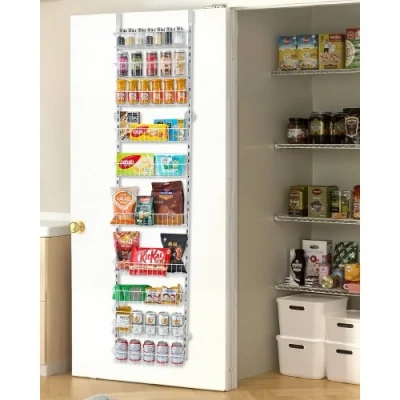 VEVOR Over the Door Pantry Organizer, 10-Tier Pantry Organization and Storage, Heavy-Duty Steel Hanging Spice Rack, Adjustable Wall Seasoning Shelves, for Home Kitchen Laundry Room Bathroom, WhiteSquare Tube Brackets2 in / 50mm Wide Door HooksStrong Adhesive PadsStable and DurableMultifunctional StorageHigh-Quality Pads without DamageItem Size: 16.5 x 7.1 x 76.8 in / 420 x 180 x 1950mm,Color: White,Item Model Number: DPO-10,Main Material: Q195/Chrome-plated,Item Weight: 7.9 lbs / 3.6 kg