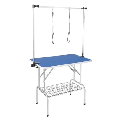 VevorVEVOR Pet Grooming Table Two Arms with Clamp, 915 x 610mm Dog Grooming Station, Foldable Pets Grooming Stand for Medium and Small Dogs, Free Two No Sit Haunch Holder with Grooming Loop, Bearing 150kgDurable Pet Grooming TableClamp-Adjustable Grooming ArmThoughtful DetailsSimple and Quick InstallationWide ApplicationConvenient Storage ShelfDesktop Height: 31.5" / 800.1 mm,Static Load: 330lbs / 149.7kg,Desktop Size: 36" x 24" / 914.4 x 609.6 mm,Model: GT-205H,Product Weight: 33.73lbs / 15.3kg,Main Material: 201 Stainless Steel,Arm Height: 34.7" / 881.4 mm,Desktop Color: Blue,Product Size: 41.73"x24.25"x66.97" / 1060x616x1701 mm
