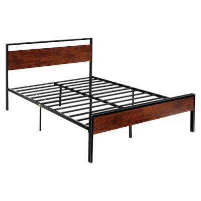 Sturdy and Durable: The Queen Size platform bed features a strong steel frame and reinforced legs with a 1000lb capacity, ensuring stable, reliable support for a peaceful sleep Noise-Free Design: The Queen Size bed frame features built-in soundproofing cotton to absorb vibrations and reduce noise when moving. The foot caps secure the frame, reducing friction sounds during daily use, enhancing the overall quiet experience Under-Bed Storage: With 12 inches of clearance, the bed frame provides ample space to store seasonal blankets, everyday items, making the most of every inch. The 12-inch height also makes it easier to clean under the bed, reducing cleaning effort Versatile Style: The vintage brown headboard and black metal frame blend effortlessly with any room style, ideal for bedrooms, dorms, hotels, or guesthouses Easy Assembly: Our Queen Size platform bed frame is carefully designed with all necessary components, and with simple instructions, you can quickly assemble it in no time