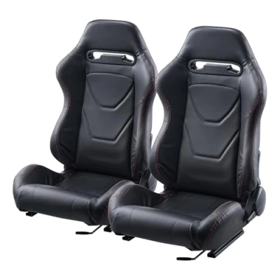 Universal Fit: Our racing seats are designed to accommodate a wide range of drivers. With dimensions of 21.7 x 23 x 34.8 in/550 x 585 x 885 mm, the 2 sets of seats are wider and more spacious, making them ideal for most drivers. They fit a variety of car styles, including sports cars, racing cars, SUVs, and even go-karts, providing a universal solution for your vehicle. Durable & Comfortable: Crafted with soft, easy-to-clean PVC leather on the surface, our seats combine luxury and practicality. Inside, a sturdy Q235B steel frame provides unmatched durability, while the high-density foam ensures superior support and resilience. The firm sliders and tightly stitched seams add to the overall longevity of the seat, making it ideal for driving. Adjustable: Experience flexibility with our racing seats. The adjustable backrest (90°-180°) allows you to find your ideal position, from sitting upright to reclining or leaning back. The seat also slides forward and backward, ensuring that every driver can find ideal seating position for maximum comfort. Long-Drive Comfort: Designed with ergonomics in mind, our racing seat features a 3D contoured structure that fully aligns with your spine. The generous padding provides ample support for your head, shoulders, and lower body, lowering fatigue during long drives. Whether for short races or extended road trips, you'll stay comfortable and focused. Installation Reminder: Our racing seats come with single-lock sliders for easy assembly. Simply bolt the seat into place, and you're ready to go. When removing the original car seats, please keep the screws needed for installing the new seats. Note: The mounting brackets are not included.