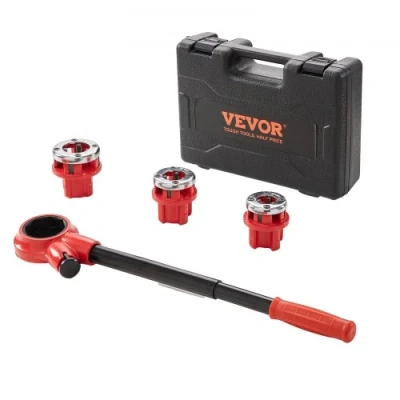 VEVOR Ratchet Pipe Threader Kit, 1/2" NPT, 3/4" NPT, 1" NPT Manual Ratcheting Pipe Threader, Portable Pipe Threading Tool Set with 3PCS NPT Dies, Storage Case for Galvanized Aluminum Iron Copper PipesHigh StrengthBuilt to LastComfortable OperationEasy to OperateWide Applications3PCS NPT DiesThreading Teeth Material: 9SICR,Color: Orange + Black,Item Model Number: KT1103A,Product Weight: 9.3 lbs / 4.2 Kg,3 Threading Dies: 1/2" NPT, 3/4" NPT, 1" NPT,Product Dimensions: 21.1"x3.6"x1.5" / 537x91x39 mm