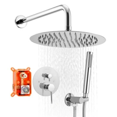 High-Pressure Shower: Our dual-function shower system provides a luxurious experience with air-injection technology, ensuring high pressure even under low water conditions. Save water with 1.78 GPM flow rate, offering a spa-like, relaxing shower Adjustable Handheld Shower Head: The ergonomic handheld showerhead ensures a comfortable grip. With a 59"/1.5m stainless steel hose, it's perfect for cleaning pets, babies, or hard-to-reach spots. The adjustable holder allows flexible shower angles Even Water Coverage: The 16"/40.6cm extended shower arm increases coverage, ensuring a smooth, even rain shower. The 360° rotating shower head meets various angle needs, and the G 1/2" connection requires no extra parts for easy installation Easy Temperature Control & Burn Protection: The high-quality brass mixing valve offers quick, smooth temperature adjustments, preventing burns. The ceramic valve core ensures long-lasting durability, preventing leaks or damage over time Sturdy All-Metal Construction: Made of durable stainless steel, brass, and zinc alloy, this shower faucet set resists fingerprints and water spots. It’s easy to clean and adds an elegant touch to any bathroom, perfect for apartments, hotels, and guesthouses