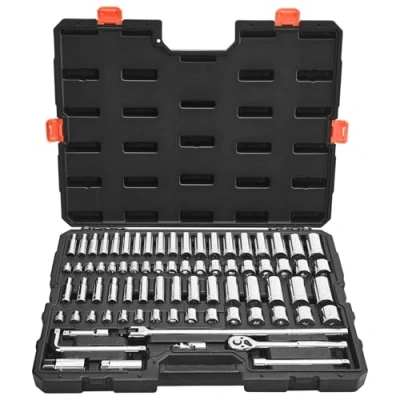 VEVOR Socket Set, 76 Pieces, 9.5 mm Drive and Ratchet SAE Metric, Deep Shallow, Mechanic Tool Kit with Accessories Storage Case, CR V Alloy Steel, for Automotive Repair