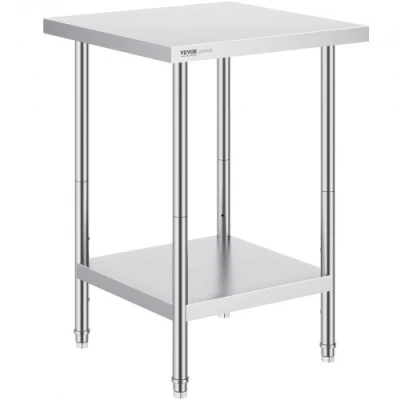 VEVOR Stainless Steel Prep Table, 24 x 24 x 34 Inch, Heavy Duty Metal Worktable with 3 Adjustable Height Levels, Commercial Workstation for Kitchen Garage Restaurant BackyardStylish Work TableMultiple Styles AvailableDurable, Safe, and StableFlexible SetupEasy to InstallVersatile ApplicationsHeight Adjustment: 3 Levels,Product Size (L x W x H): 24 x 24 x 34 inch / 610 x 610 x 864 mm,Item Model Number: GZT610*610T,Product Weight: 24 lbs / 10.95 kg,Material: Stainless Steel