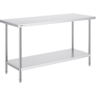 VevorVEVOR Stainless Steel Prep Table, 24 x 60 x 34 Inch, Heavy Duty Metal Worktable with 3 Adjustable Height Levels, Commercial Workstation for Kitchen Garage Restaurant BackyardStylish Work TableMultiple Styles AvailableDurable, Safe, and StableFlexible SetupEasy to InstallVersatile ApplicationsHeight Adjustment: 3 Levels,Product Size (L x W x H): 24 x 60 x 34 inch / 610 x 1524 x 864 mm,Item Model Number: HET-24*60,Product Weight: 53 lbs /24.1 kg,Material: Stainless Steel
