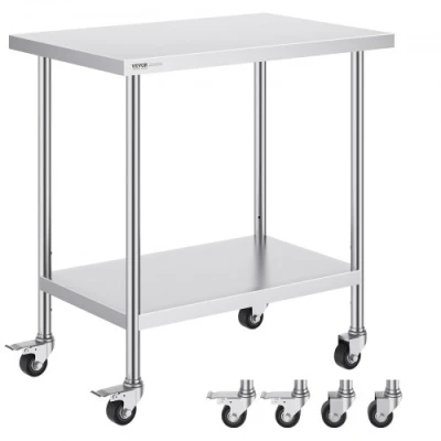 VEVOR Stainless Steel Work Table 24 x 36 x 38 Inch, with 4 Wheels, 3 Adjustable Height Levels, Heavy Duty Food Prep Worktable for Commercial Kitchen Restaurant, SilverStylish Work TableMultiple Styles AvailableDurable and StableFlexible SetupEasy to InstallVersatile ApplicationsHeight Adjustment: 3 Levels,Product Size (L x W x H): 24 x 36 x 38 inch / 610 x 914 x 954.6 mm,Item Model Number: GZT910*610J,Product Weight: 35 lbs / 15.9 kg,Material: Stainless Steel