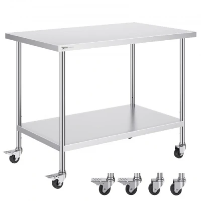 VEVOR Stainless Steel Work Table 30 x 48 x 38 Inch, with 4 Wheels, 3 Adjustable Height Levels, Heavy Duty Food Prep Worktable for Commercial Kitchen Restaurant, SilverStylish Work TableMultiple Styles AvailableDurable and StableFlexible SetupEasy to InstallVersatile ApplicationsHeight Adjustment: 3 Levels,Product Size (L x W x H): 30 x 48 x 38 inch / 762 x 1219 x 954.6 mm,Item Model Number: HETG-30*48,Product Weight: 53 lbs / 24.1 kg,Material: Stainless Steel