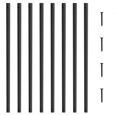 General description VEVOR Staircase Metal Balusters are designed to enhance the aesthetic appeal of your space while providing safety and security. Made from durable aluminum alloy, these balusters feature a stylish satin black powder-coated finish that is both rust-resistant and wear-resistant, making them suitable for various indoor and outdoor railing frameworks. Technical specifications Model: BP-29.5in-51 Quantity: 51 pieces Primary Material: Aluminum Structure: Hollow Color: Matte Black Net Weight: 10.1 lbs / 4.58 kg Product Dimensions (per piece): 1'' x 0.2'' x 29.5'' / 25 mm x 5.5 mm x 750 mm Thickness: 0.03'' / 0.8 mm Compatibility and accessories Includes 51 baluster shafts 102 M3.5x30 screws Instruction manual for easy installation Installation Installation is straightforward with included screws; simply drill and secure using an electric drill. Ensure baluster spacing does not exceed 4 inches for optimal results. The hollow aluminum tubing can be easily trimmed to fit