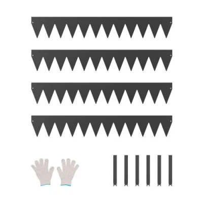 VEVOR Steel Landscape Edging, 4 Packs 40 x 6 in Rust-Resistant Metal Landscape Edging, Bendable Garden Edging Border, Heavy Duty Lawn Edging, Easy-to-Install, Flower Bed Yard Pathway Divider BlackCorrision-ResistantLonger SpikesGloves IncludedVersatile for Multiple ApplicationsHighly Weather-ResistantMultiple Size OptionsSurface Height: 2.85 in/ 72.4mm,Clips: 6 pcs, 1.5 x 8.19 in/ 38 x 208 mm,Number of Edgings: 4 pcs,Nails: Not included,Product Color: Black,Item Model Number: ZY-40X6-4Black,Product Weight: 14.11 lbs / 6.4 kg,Product Dimensions: 40 x 6 x 0.06 in/ 1016 x 152.4 x 1.5 mm,Spike Height: 3.15 in/ 80mm,Main Material: Galvanized Steel