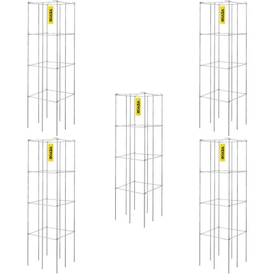 VEVOR Tomato Cages, 11.8" x 46.1", 5 Packs Square Plant Support Silver PVC Coated Steel Towers for Climbing Vegetables, Plants, Flowers, Fruits