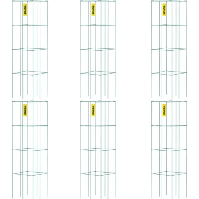 6 Packs Square Tomato Cages Stably Stand & Interlock Design & Multi-function Steel wire construction with PVC coating for long-term usage. Our heavy-duty tomato cages provide strong support for your fruits, vegetables, flowers, and other climbing plants. The excellent functions of interlock design, DIY combination, and compact storage, will give you a great harvest in the next growing season. 6 Packs 3-tier Trellis Multi-function Tomato Cages Strong Support Steel Wire Foldable & Flexible Combination Key Features 6 Packs 3-tier Trellis: 6 sets of 3-tier square trellis. 39.4"/ 100 cm high tomato cage is specifically designed to provide vertical climbing plants support, preventing the fruit, vegetable, and leaves from weighing down the stems or entangling with each other. The large 14.6"L x 14.6"W/ 37 x 37 cm openings square frame gives your plants more space to branch out, accessing for a bigger, cleaner harvest at growing seasons. Multi-function Tomato Cages: With the help of our