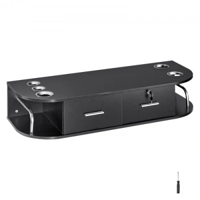 VEVOR Wall Mount Styling Station, Hair Barber Table with 5 Hair Dryer Holders, 2 Drawers(One Lockable), Beauty Salon Equipment for SPA, Barber Shop, Home & Bathroom, BlackMatte FinishStainless Steel Side BracketsHeat-Resistant Tool SleevesVersatile UsageEasy AssemblyVersatile Hair Stylist StationColor: Matte Black,Item Model Number: WC1007,Product Weight: 16.5 kg/36.37 lbs,Product Dimensions: 106x38x21.5 cm/41.73×14.96×8.46 inch,Number of Sleeves: 5,Main Material: MDF + Heat-Resistant Alloy,Number of Drawers & Locks: 2 & 1
