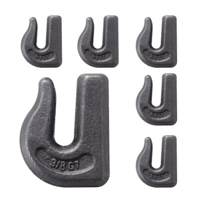 VEVOR Weld-on Grab Chain Hooks 3/8" Heavy Duty Tow Hook G70 Forged Steel 6 Packs Tractor Hook Weldable Compatible for Tractor Bucket, Crane, Chain Hoist, Forklift, Maximum Break Strength 15,000 lbsHigh Load CapacityUniversal SizeFlexible & EfficientSturdy ConstructionEasy InstallationUser-Friendly DesignBreaking Load Limit: 15000 lbs/6803.88 kg,Product Size (L x W x H): 3" x 2.36" x 0.7"/76.2 x 59.94 x 17.78 mm,Grab Hook Size: 3/8"/9.52 mm,Item Model Number: QY6,Material Grade: G70,Installation Mode: Welded,Net Weight: 4.4 lbs/2 kg (including all accessories),Working Load Limit: 6600 lbs/2993.7 kg