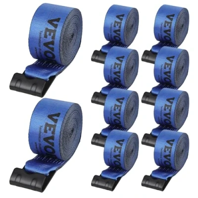 VEVOR Winch Straps, 4" x 30', 6000 lbs Load Capacity, 18000 Breaking Strength, Truck Straps with Flat Hook, Flatbed Tie Downs Cargo Control for Trailers, Farms, Rescues, Tree Saver, Blue (10 Pack)