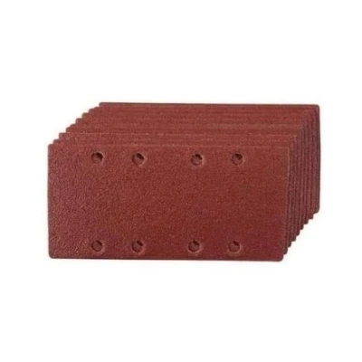 Grit: 80 10 sheets Size: 93mm x 190mm Rectangular with 8 holes Suitable for use on wood, metal, plastics and filler.