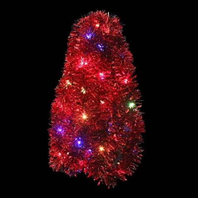 Package: Pack of 1 red Christmas tinsel garland with multi-colored LED lights, 10 METERS, LONG ENOUGH AND SPARKLING to decorate your Christmas tree from head to toe. Material: The material of Xmas tinsel is made of high quality PVC, QUITE STRIKLING WITH MULTI COLORED LED LIGHTS, very popular color, looks very Christmassy. Size: 10 meter long Christmas decoration tinsel, REALLY LONG AND SHINY. You also can tailor it to meet your needs, use it to decorate your home or office, add more Merry Christmas atmosphere. Creative: The red Xmas tinsel is EASY TO BEND AND MOLD TO CREATE DESIGNS, SHAPES AND OBJECTS, or add on as a fun accent to other craft projects! Great for different festive parties favor, such as wedding, birthday, classrooms, parties and restaurants. Multi-colored LED Lights:The red tinsel is attached with LED lights (batteries are not included) for brighting up your home and adding more festive atmosphere, just install 3 AA batteries.