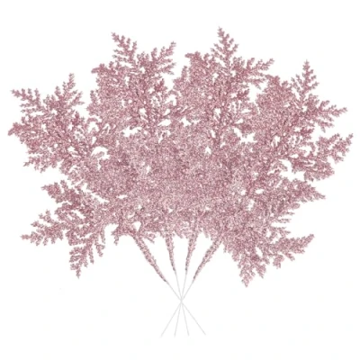 VEYLIN 10 Pcs Artificial Christmas Leaves Picks, Pink Glitter for Xmas Tree Wreath Festival Decoration
