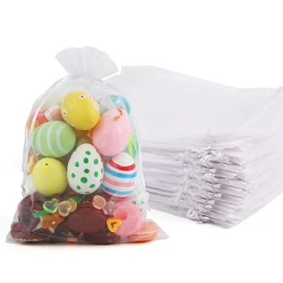VEYLIN 50 Pieces Large White Organza Gift Bags for Wedding Birthday Party Supplies (20 x 30cm)
