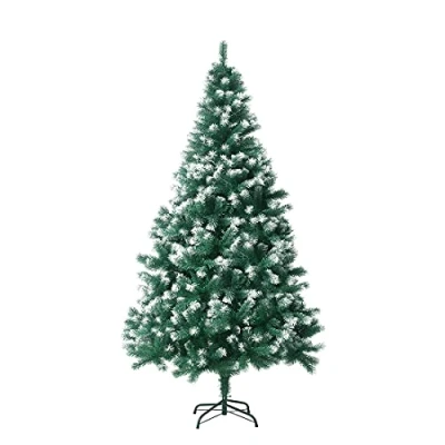 SIZE: VEYLIN artificial Christmas tree measure 6 FEET IN HEIGHT AND 31 INCH IN DIAMETER. WITH NATURAL GREEN LEAVES AND FLOCKED SNOW, LOOKS SO BUSHY AND REALISTIC, and must become an eye-catching addition to any room during the holidays FULL AND PLUMP EFFECT: The snow flocked Christmas tree owns many branches covered, totally 900 tips, create a unique wintry feel. These branches are easily fluffed to create full and plump effect and let you easily place lights and ornaments EASY TO ASSEMBLE: Each frosted Christmas tree comes with detailed assembly instructions, so you don’t worry about not assembling it. Easy to assemble, lightweight, nice and fluffy. Please be patient after receipt of assembly, the branches open to make the Christmas tree look full GREAT STABILITY: The tree can be disassembled into three hinged parts with a sturdy metal tree base, can keep standing tall and stable in home, dose not take up much room, secure and eye-catching, easy to store for next time use, bring you more convenience and joy MUST HAVE: The Christmas tree so realistic in looks just like an outdoor tree perfectly kissed by snow. Decorated with other ornament and gifts, the Christmas tree will be a big hit and draw great attention