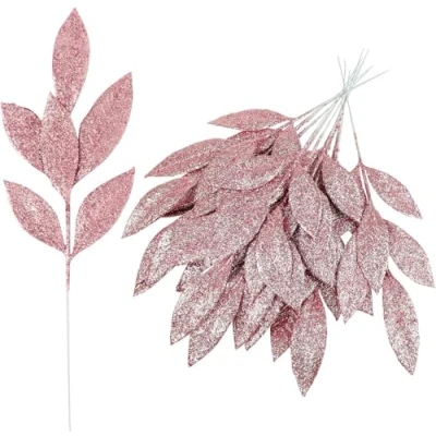 Captivating Shine - Pink Glitter Bay Leaf decorations boast a captivating shine, adding a festive sparkle to your holiday decor. Perfect Tree Accents - As Artificial Christmas Tree Picks, these leaves add an element of charm and brightness to your holiday tree. Long-lasting & Durable - Crafted from quality materials, these Artificial Christmas Tree Picks Sprays can be enjoyed season after season. Perfect Christmas Tree Picks Sprays - Our Christmas Glitter Bay Leaf sprays are an ideal choice for embellishing your Christmas tree with a touch of festive elegance. Versatile Decor - Perfect as Christmas Tree Picks Sprays, our Glitter Bay Leaves can also be added to wreaths, swags or as standalone festive decor.