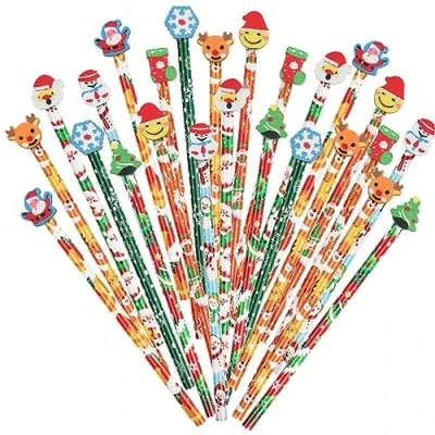 Packaging: This Christmas-themed pencil set consists of 72 pencils in 8 styles, each with 9 pencils, and each pencil has a matching cartoon eraser at the top to add some Christmas ambiance to your stationery Size: The length of these pencils is 18.7 cm /7.36 cm. These wooden pencils are perfect for small hands, allowing kids to get their creative juices flowing and making writing for the holiday season enjoyable Good Quality: Pencils are made of high quality wood and graphite, the HB lead ensures smooth and dependable writing, making these pencils suitable for all your writing needs, whether it's taking notes in class, doodling, or simply enjoying a writing session Lovely Eraser: Located at the end of each pencil, these erasers feature adorable Christmas motifs like Christmas tree, Santa Claus, snowflakes, Christmas stockings and deer. They not only add a touch of festive flair but are also functional, ensuring that any mistakes can be easily corrected Great gift: Not only are these pencils practical and visually appealing, but they also make wonderful stocking stuffers, party favors, or additions to gift baskets during the holiday season