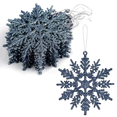 VEYLIN Christmas Tree Decorations, 12PCS Glitter Snowflake Ornaments Midnight Blue