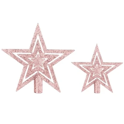 VEYLIN Christmas Tree Topper,2PCS Champagne Glittered Star Christmas Tree Topper Star Tree Topper for Christmas Tree Ornament(10+15CM) Universal Fit- Designed to be the perfect Christmas tree topper star, it fits seamlessly atop small trees, ensuring your Christmas Treetop Star is always in the spotlight. High-Quality Craftsmanship- Each Glitter Star Christmas Tree Topper is designed to last, becoming a cherished Christmas Tree Decoration for years to come. Easy Installation- The intuitive design of our mini glitter Christmas tree topper ensures it can be placed atop your tree effortlessly, making decorating a breeze. Versatile Elegance- While primarily a Christmas star tree toppers, its design complements other Christmas Tree Decorations, setting the right festive tone for your space.