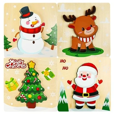 VEYLIN Christmas Wooden Puzzles, 4Pcs Santa Claus,Christmas Tree,Christmas Deer, Snowman Jigsaw Puzzles for kids, Toddlers Children Development