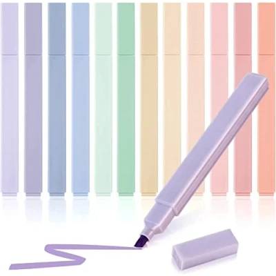 Soft Mild Pastel Colors: You will get 12 pieces of multicolor highlighters, easy on the eyes, not distracting, won't put you off from studying or working. Notice that some have imprints and some don't, some have a tighter cap some have looser ones. Smooth Writing: The square flat highlighters feels comfortable, mild highlighters is not easy to roll when using. The free-flowing ink and the flat form allow you to write something smoothly. Quick to Dry: They are permanent and they dry quickly, they will not fade or yellow, so you can enjoy the color for a long time. Chisel Tip: The nib part makes with no-fray and a little soft. More smooth and comfortable than hard or too soft nib. Perfect for detailing and filling, and outstanding performance in all areas of writing, drawing, coloring. Perfect for Daily Use: For journal, planner, work, study, note taking in school, at home and in the office. If you are not satisfied with products or have questions, please contact us in time.